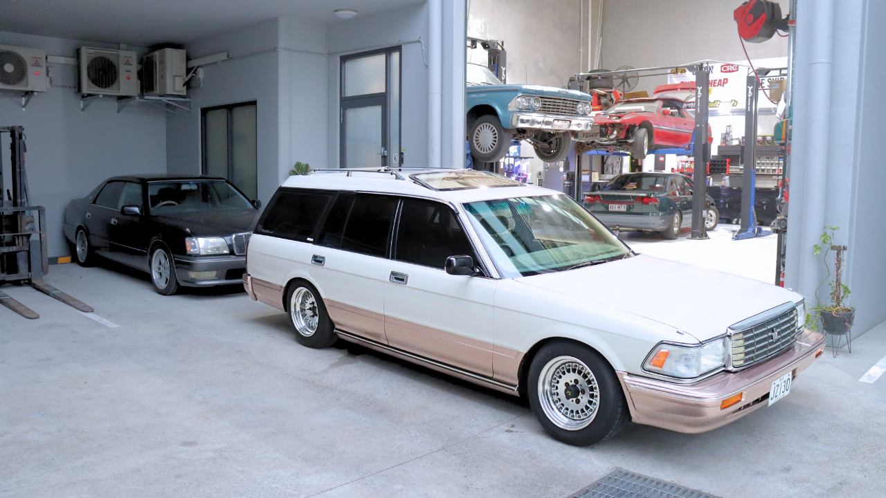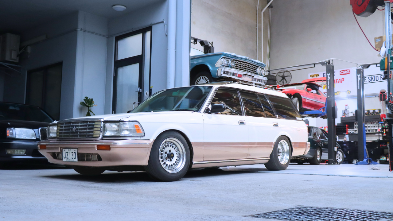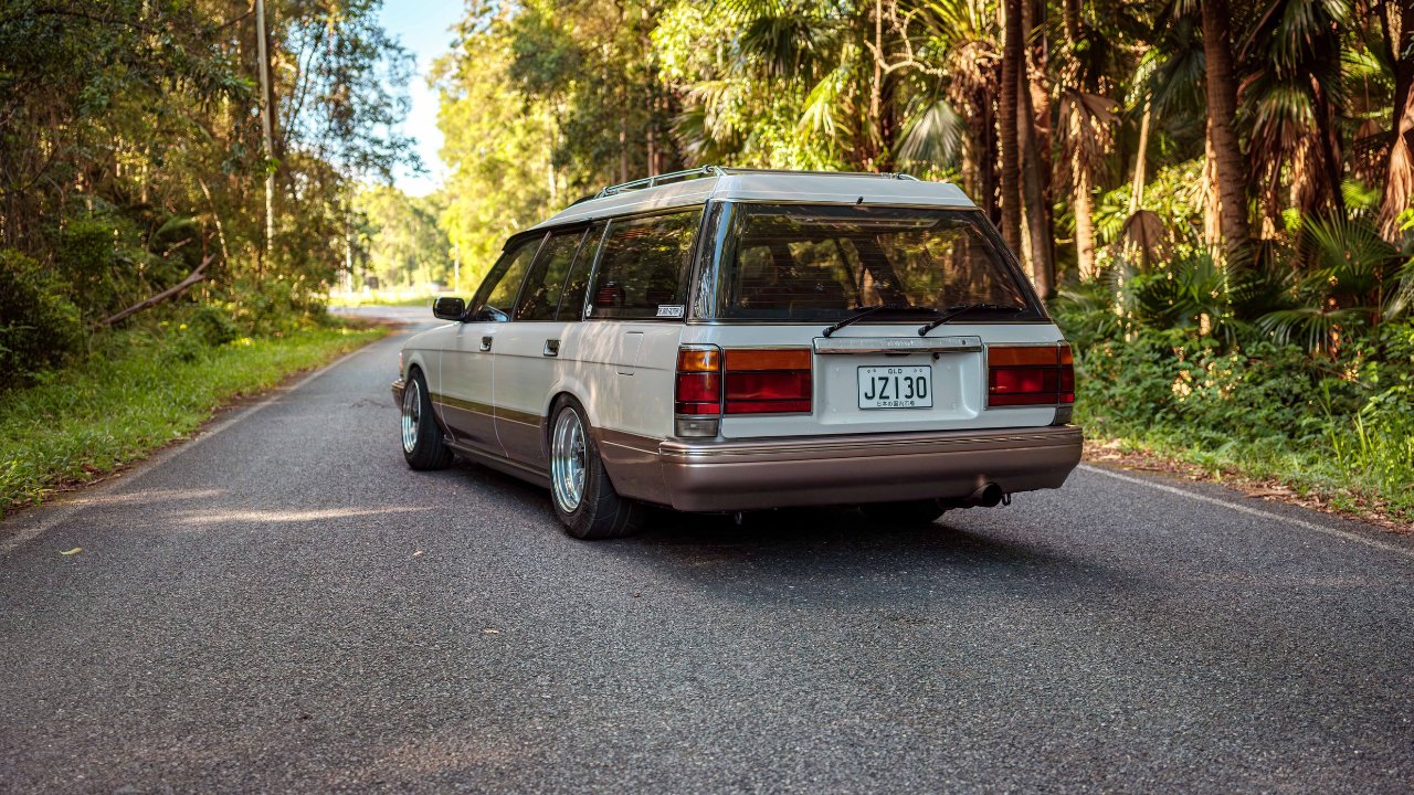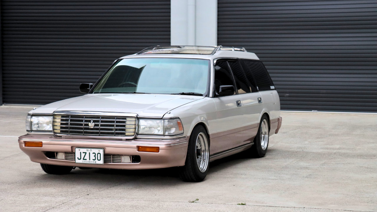 1989 Toyota Crown wagon, Door off respray in a custom pearl white and champagne two tone in mid 2022 Including inside doors and engine bay, Car builders heat management and sound deadening applied throughout cabin and doors. Barra conversion completed in oct 2023